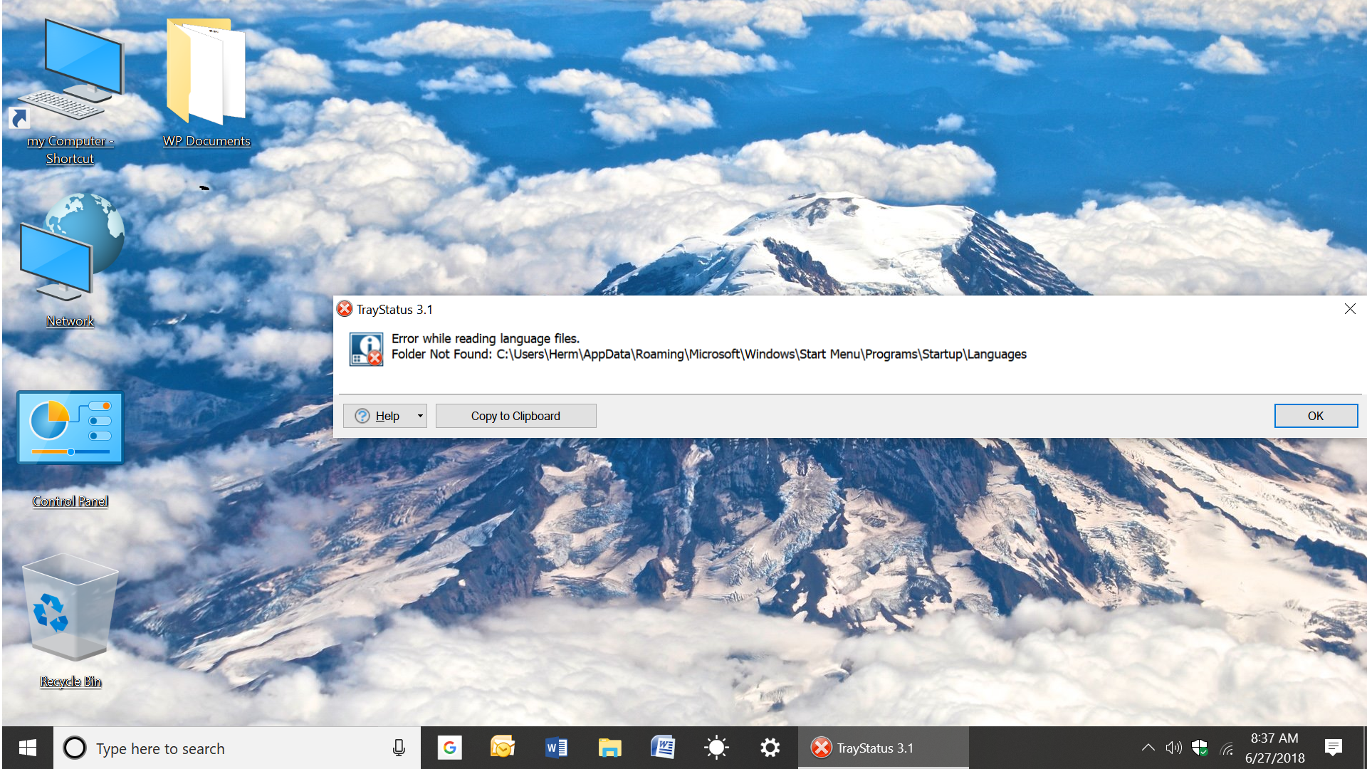 Keith – Thanks but I downloaded traystatus from the BFS website (no zip files) deleted all temp files and I still get the error display. Herm