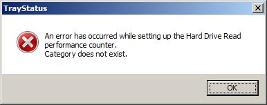 I sorted by Service, clicked on Perfdisk, and enabled it. I rebooted my Vista pc and TrayStatus worked like a charm.