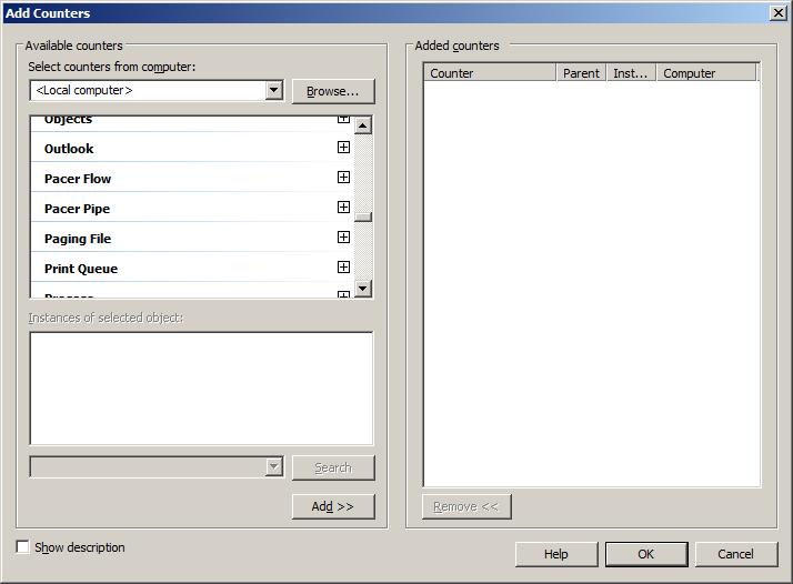 1. Download and install the Extensible Performance Counter List tool (Exctrlst.exe). You can download Exctrlst.exe at the Microsoft Web site, "Exctrlst.exe: Extensible Performance Counter List" (http://go.microsoft.com/fwlink/?LinkId=34436).